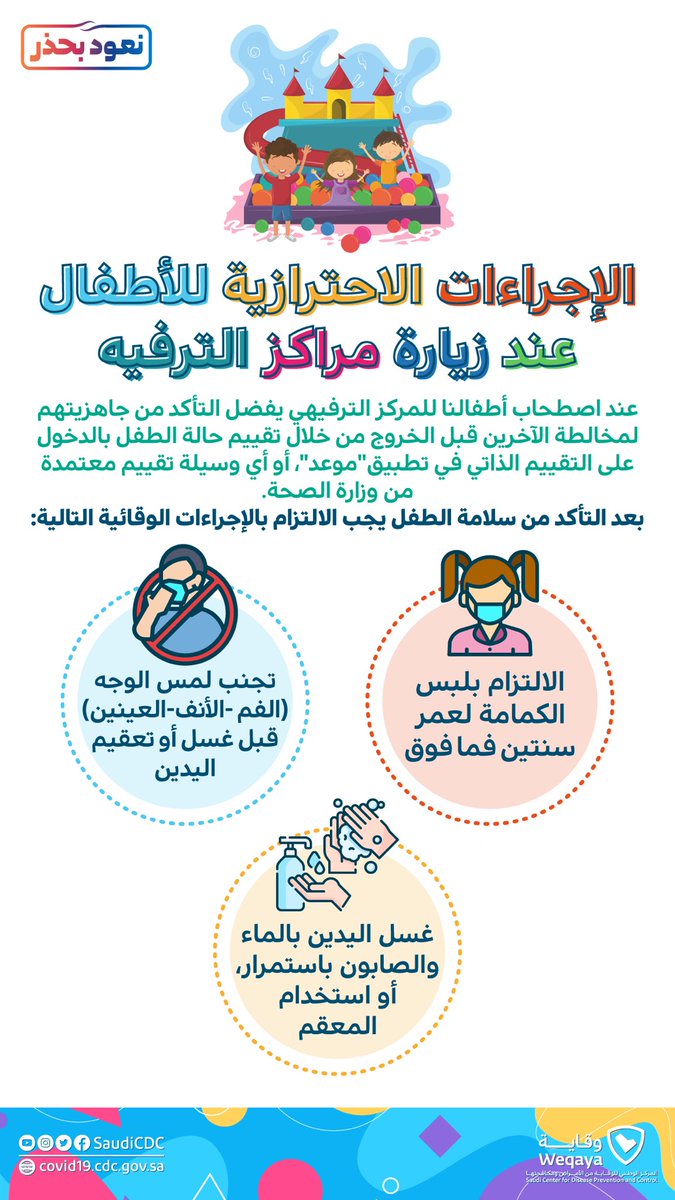 المركز الوطني للـ وقـ ـايـ ـة من الأمراض ومكافحتها On Twitter الإجراءات الاحترازية للأطفال عند زيارة مراكز الترفيه 2 وقاية نعود بحذر