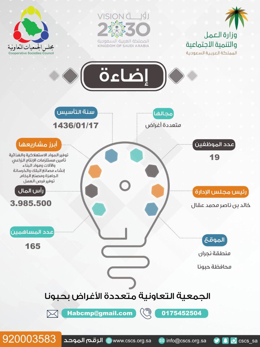 مجلس الجمعيات التعاونية On Twitter إضاءة نسلط الضوء على أبرز المعلومات العامة عن الجمعية التعاونية متعددة الأغراض Habcmp بمحافظة حبونا بمنطقة نجران Https T Co Knpfita9av